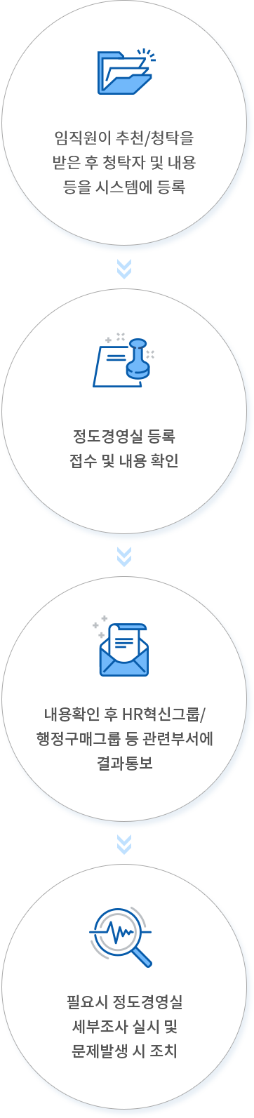 추천/청탁을 받는 임직원은 그 내용에 대해 6하 원칙에 의거, 가감 없이 사실 그대로 등록