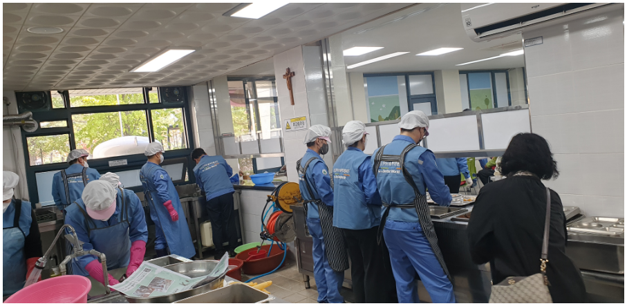 식기, 음식 배식 등 중식 준비부터 중식을 드시는 모든 분께 조금 더 맛있는 급식이 되기를 희망하며, 본사에서 준비한 맛있는 떡도 중식과 같이 배식하였다.