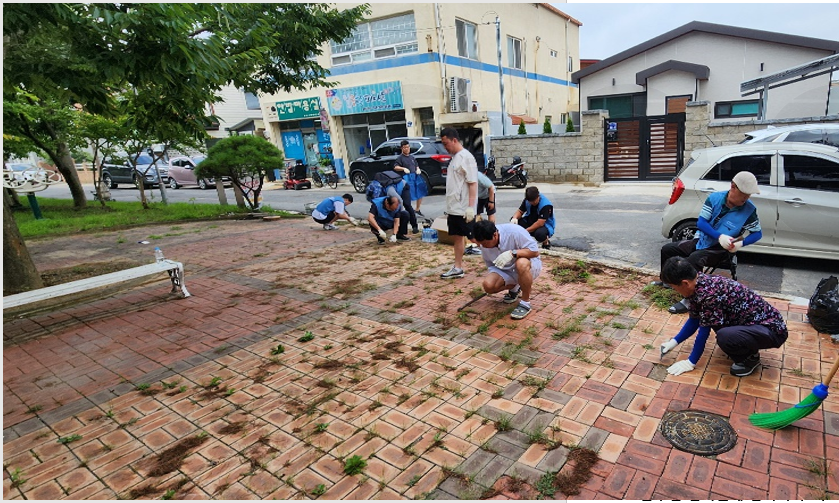 장마 기간 중 2실 직원들은 자녀들과 함께 활동하면서 자연보호의 중요성을 알려주는 기회가 되기도 하였습니다. 하수구에 쌓인 퇴적물 제거와 마을회관 보도블록 주변 잡초 제거, 안길 환경정화 활동을 하였습니다. 3실 직원들은 마을 안길, 휴게 장소인 정자 주변 잡초 제거 및 쓰레기 수거로 주민들이 깨끗한 환경에서 생활할 수 있도록 정화 활동을 하였습니다.